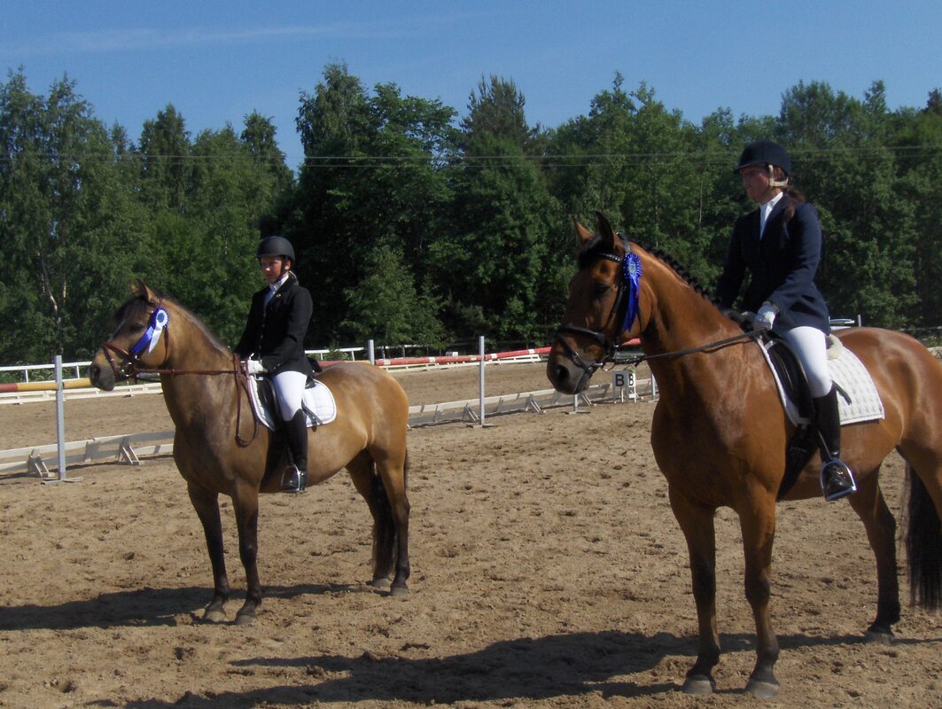 Hankolaisratsukot nappasivat kaksi luokkavoittoa ja useita sijoituksia! Sunnuntaina 12.6 paahtavaassa auringonpaisteessa hankolaisratsukot kävivät isolla porukalla kilpailemassa kouluratsastuksessa Broby:ssa ja menestys oli mahtava! Kaikki päivän ohjelmat ratsastettiin pitkällä kentällä joka jo se sinänsä tuo lisää haastetta hankolaisille jolla ei varsinaisesti ole pitkää rataa missä harjoitella kotona. Päivän ensimmäisessä luokassa ratsastettiin ohjelma Helppo C tutustumisluokan kouluohjelma johon osallistui kaksi hankolaisratsukkoa. Janina Laine-Harvest Moon tekivät erinoimaisen suorituksen ja nappasivat voiton itselleen tässä luokassa tuloksella 62,826%. Tämä oli ratsukon ehdottomasti paras suoritus ja myöskin valmentaja Mia Maukonen oli tyytyväinen ratsukon suoritukseen. Julia Holmström-Vuko van de Mullegracht tekivät niinikään upean suorituksen ja oli luokassa toisella sijalla tuloksella 61,087%. Luokaan osallistui 9 ratsukkoa. Toisena ohjelmana hieman vaativampaa ohjelmaa Helppo B:3 ja menestyi oli taas mahtava! Janina ponillaan Harvest Moon ylittivät itseensä ja ottivat taas luokkavoiton nimiinsä tuloksella 61,818%! Menestystä siivitti Mikaela Lundberg-At Last tulleen hienosti kolmannelle sijalle tuloksella 60,0%. Julia Holmström-Vukolla oli luokassa neljäs tuloksella 59,773%. Luokkaan osallistui 10 ratsukkoa. Päivän vaikein luokka oli Helppo A:3 johon osallistui 3 hankolaisratsukkoa. Tässä luokassa Mia Maukonen-Weston Joychild ylsivät hienosti kolmannelle sijalle tuloksella 61,034%. Sini Pellikka-Soljori tulos oli 60,345% joka oikeutti neljänten tilaan. Sini osallistui myöskin hevosella Milli-Villeri ja tulos oli 55,69%. Luokaan osallistui 11 ratsukkoa. Kaikki tulokset nähtävissä www.kolumbus.fi/v-nr