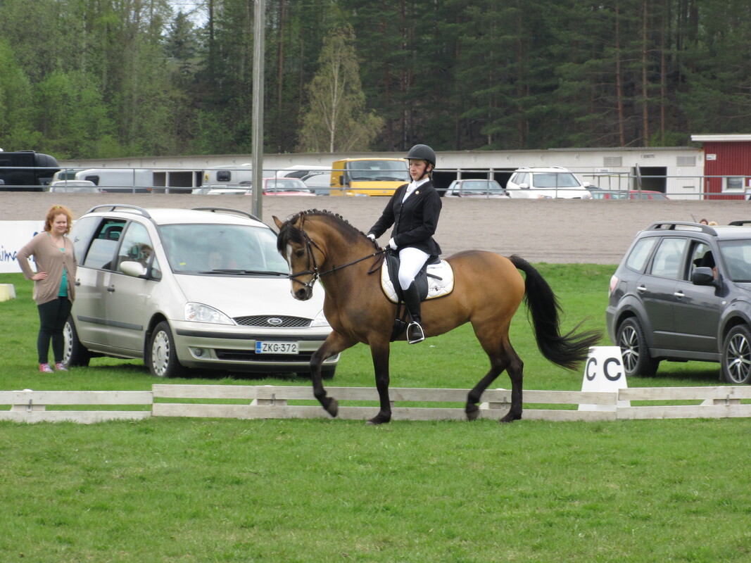 Janina Laine ja Harvest Moon urakoivat kouluradalla mukavalla menestyksellä myös lauantaina, jolloin Kirkkonummella järjestettiin aluetason kilpailut. Laine osallistui luokkaan Helppo B, jossa tulos 61,196% toi kolmannen tilan tulosluettelossa. Voitto meni Lappeenrannasta tuttuun osoitteeseen: Hyvinkään Ella Paloheimolle prosentein 64,783. |