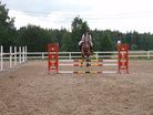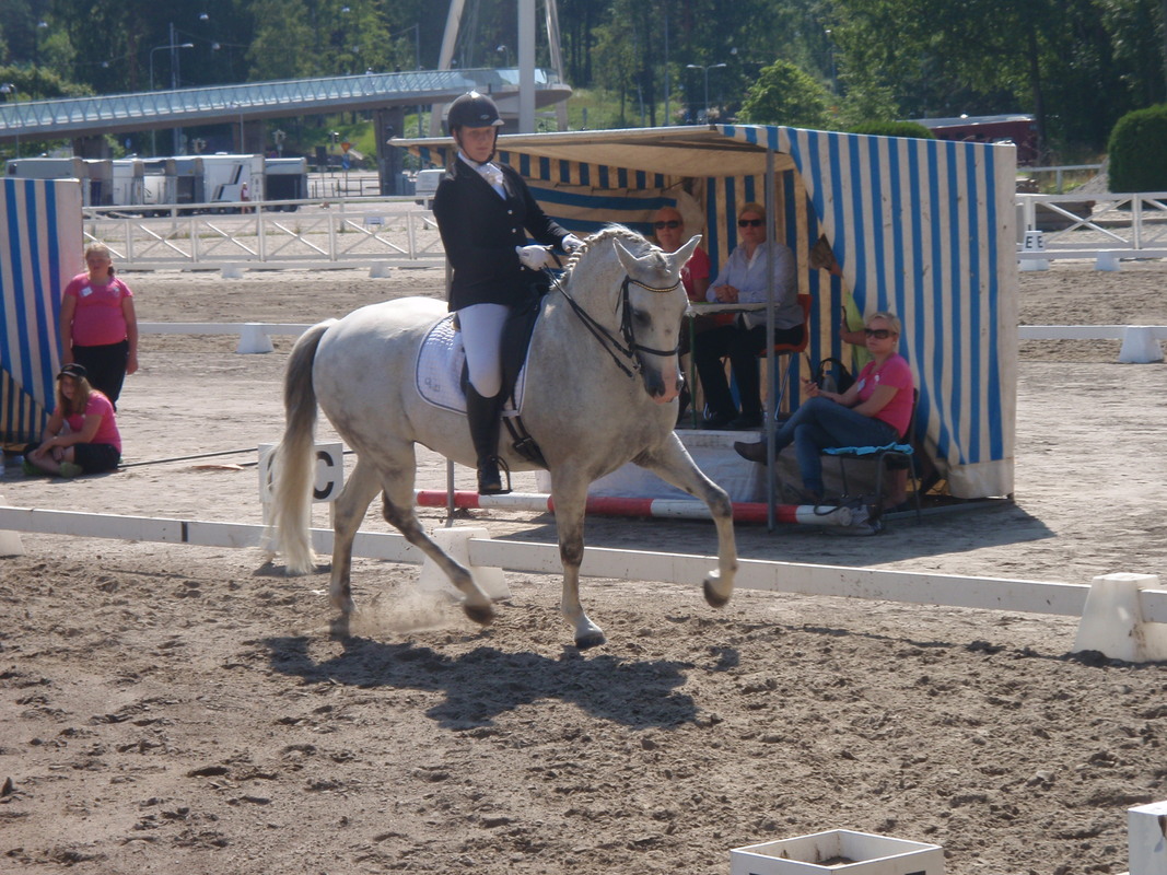 Ratsastuskesä on kuin ilmat tällä hetkellä - kuumimmillaan. Kilpailuja käydään ahkerasti joka puolella Suomea. Hankoniemen ratsastajain Janina Laine osallistui torstaina 11.7. Helsingin Husön aluetason esteratsastuskilpailuun hyvällä menestyksellä. Luokassa 80 cm Laine ja Dollar II-poni sijoittuivat tiukassa sekuntitaistossa toiseksi ajalla 24,53. Luokkavoiton vei Lohjan Aida Nyman (Kouros) ajalla 24,29. Janina Laine (Rico Iberico) osallistui viikonvaihteessa myös Laakson kansallisiin kouluratsastuskilpailuihin. Ratsukon tulos 61,839% luokassa Helppo A:2 2009 riitti kymmenennelle tilalle Husön Susanna Thermanin (Rossini III) voittaessa luokan prosentein 67,989. Luokassa Kür junioreille Laine oli kolmannella tilalla prosentein 64,250 Ratsastusseura DC:n Emmi Moilasen (Brown Butler) ottaessa luokkavoiton tuloksella 67,417%.