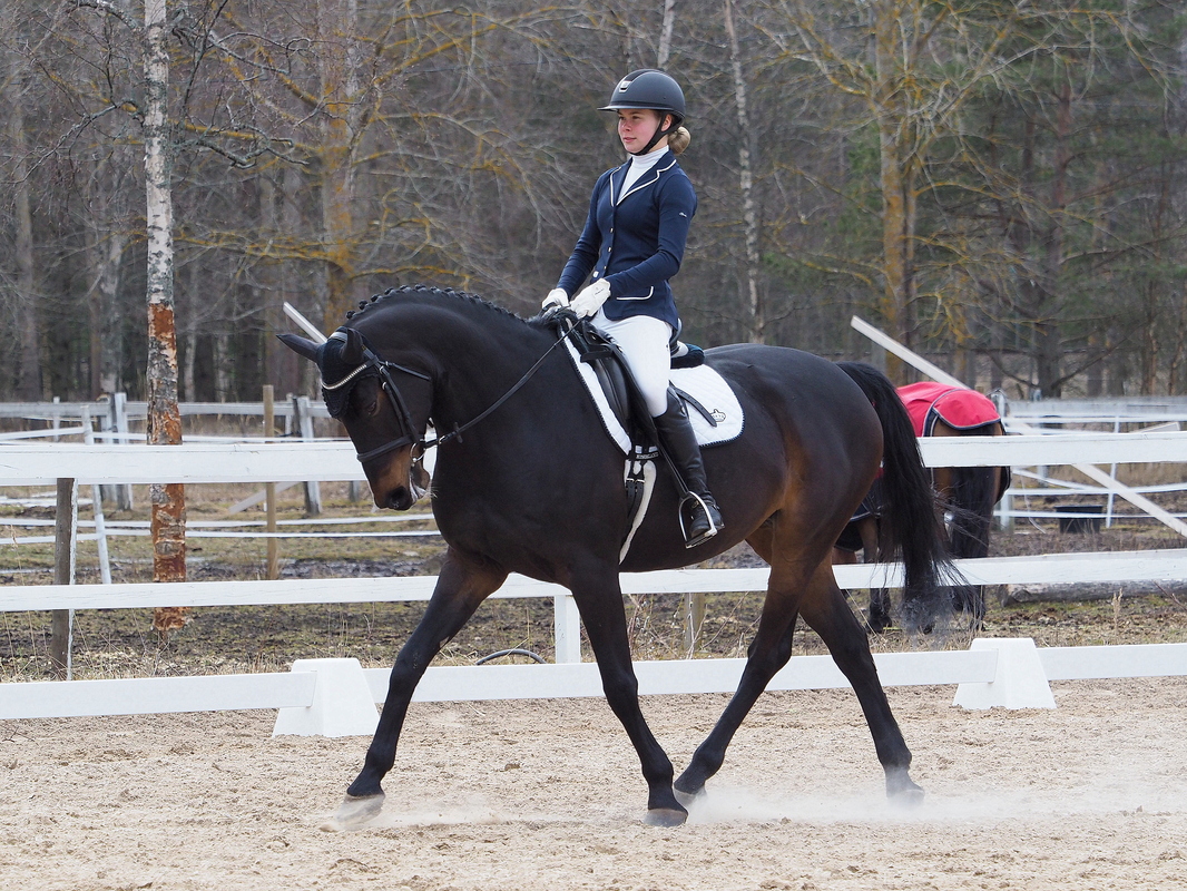 Sunnuntaina 14. huhtikuuta ratsastuskoululla järjestettiin kouluratsastuskilpailut 1-tasolla. Kilpailuun oli ilmottautunut ennätykselliset 32 ratsukkoa! Nopeasti tallin parkkipaikka oli täynnä hevosia ja trailereita.